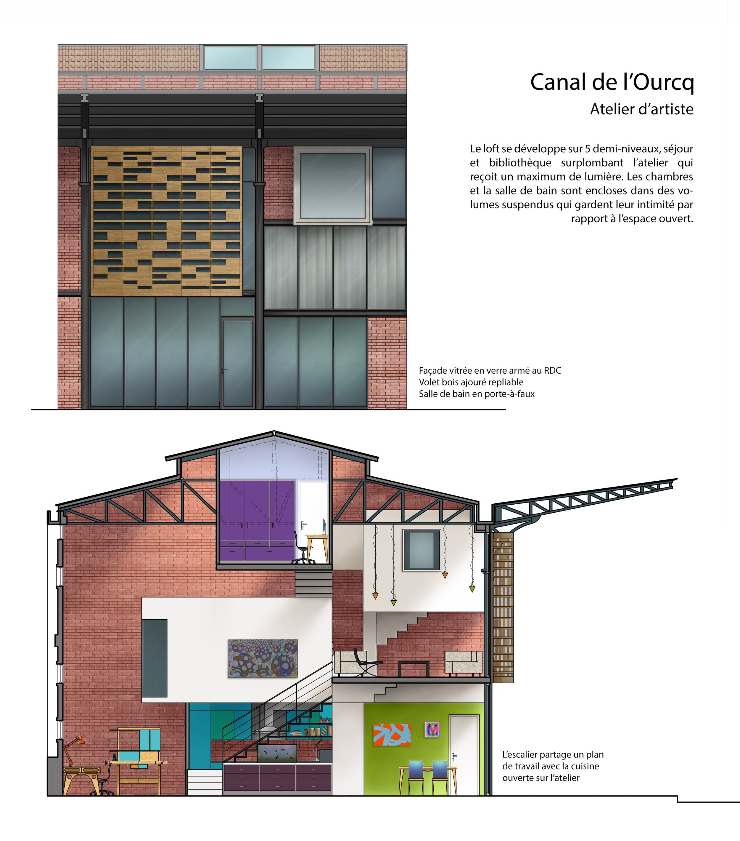 Durant ma carrière d’architecte d’intérieur, j’ai conçu les plans et perspectives destinés à illustrer différents projets au sein de plusieurs agences, notamment dans le secteur de l’hôtellerie de luxe et pour le Club Med, dans le cadre du concours de l’Université de Nancy aux côtés de l’architecte Henri Ciriani, ainsi que pour mes créations personnelles.