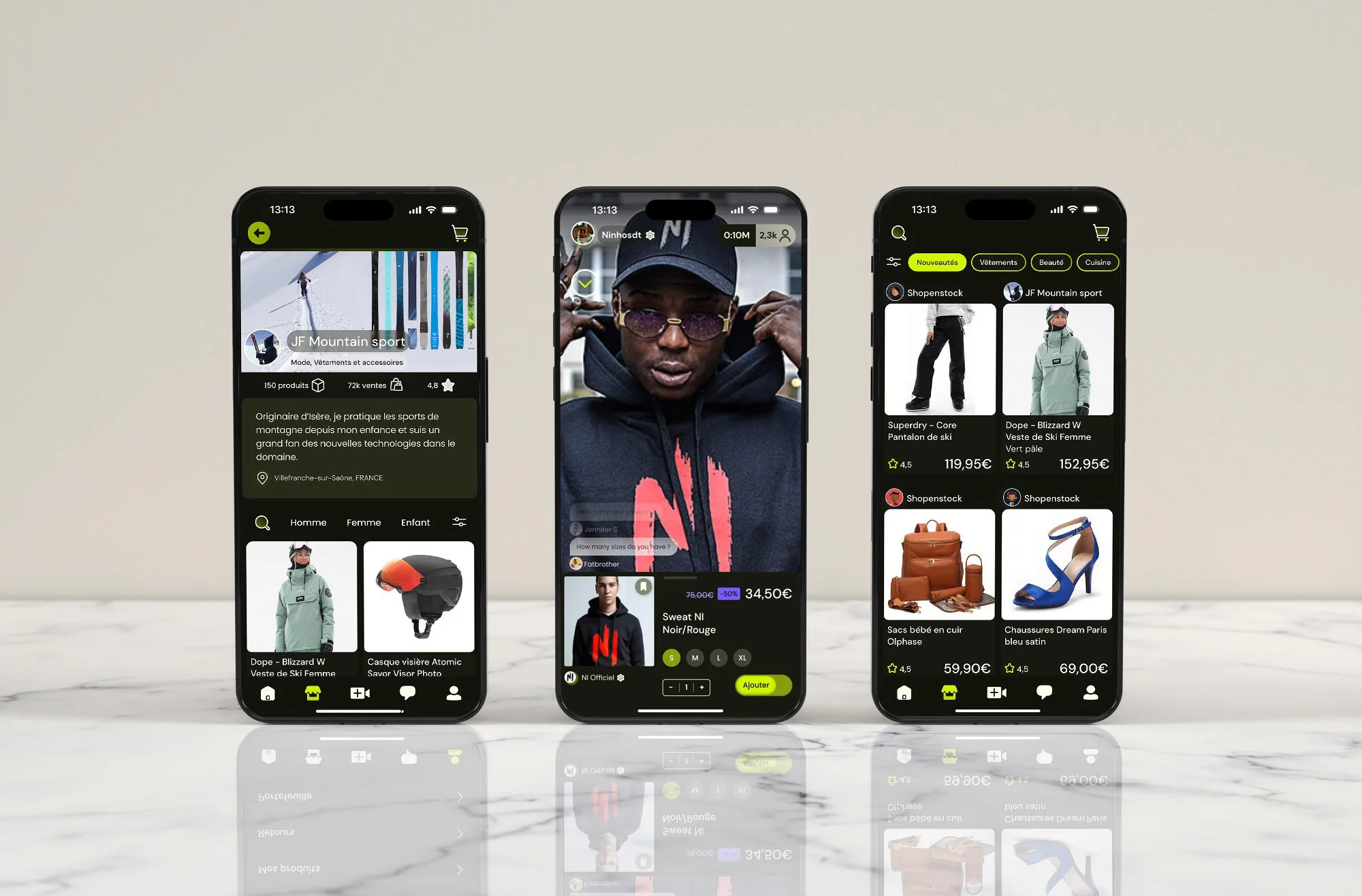 Application de live shopping en ligne.